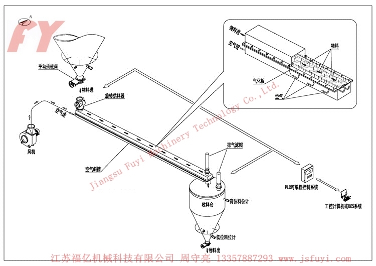 After the material is loaded into the sealed delivery tank, the compressed air enters from the top, bottom fluidizing plate and pressurization air of the sending tank, and the air passes through the air permeable barrier to make the material "boiling" to be fluidized. Because the pressure in the tank is sent, the fluidization material is sent through the inner delivery pipe.