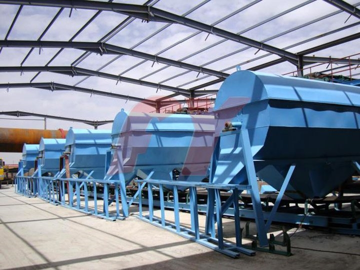 2)T?o h?t : Nh?ng v?t li?u ?ã ???c tr?n ? b??c trên ???c ??a ?i b?i b?ng t?i chuy?n v?n , ?i vào khay tròn c?a máy phân lo?i v?t li?u , và sau khi qua máy phân lo?i , nh?ng v?t li?u ??ng ??u s? ???c ??a ??n h? th?ng c?a máy t?o h?t dòng DG . V?t li?u chuy?n ??n máy t?o h?t s? ph?i qua công ?o?n cán và nghi?n ?? có th? t?o ???c nh?ng h?t nh? mong ??i , nh?ng v?t li?u ???c ??a ra t? máy t?o h?t s? ???c t?p trung t?i b?ng t?i ?? chuy?n ??n công ?o?n ti?p theo .